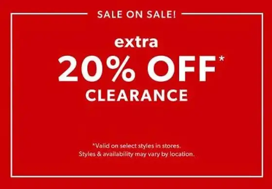 Sale on sale! Shop in store and get an extra 20% off clearance.