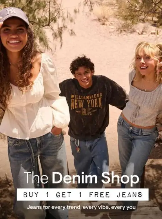 Don't miss out! Shop in store and get buy 1, get 1 free on jeans.